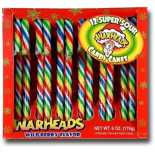 Warheads Holiday Super Sour Wild Berry Flavor Candy Canes 0 5 Oz 12 Count Walmart Com